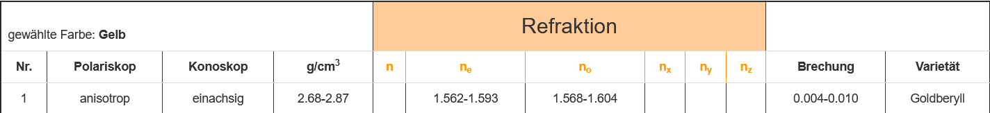 Zwei Farben bei 3600 Messung = anisotrop (einachsig doppelbrechend) = Gelb/Hellgelb