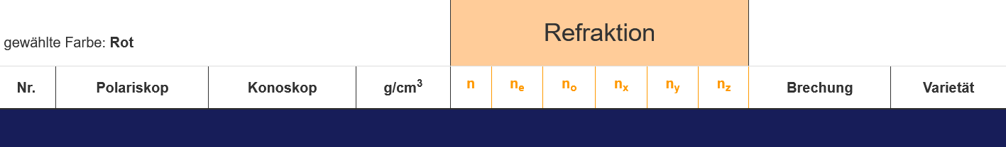 Zwei Farben bei 3600 Messung = anisotrop (einachsig doppelbrechend) = Deutlich: Rot/Orange