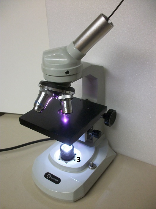 - Mikroskop: Taschenlampe (Pos. 3) wird ersetzt durch einen Schwanenhals Lichtleiter der Firma Schott