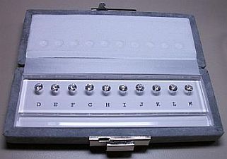 In Zusammenarbeit mit dem Farbsatz ermitteln wir hier die Farbe des vorhandenen Diamanten.