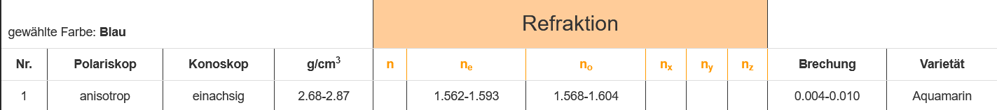Doppelbrechung: -0.008 / optisch einachsig negativ